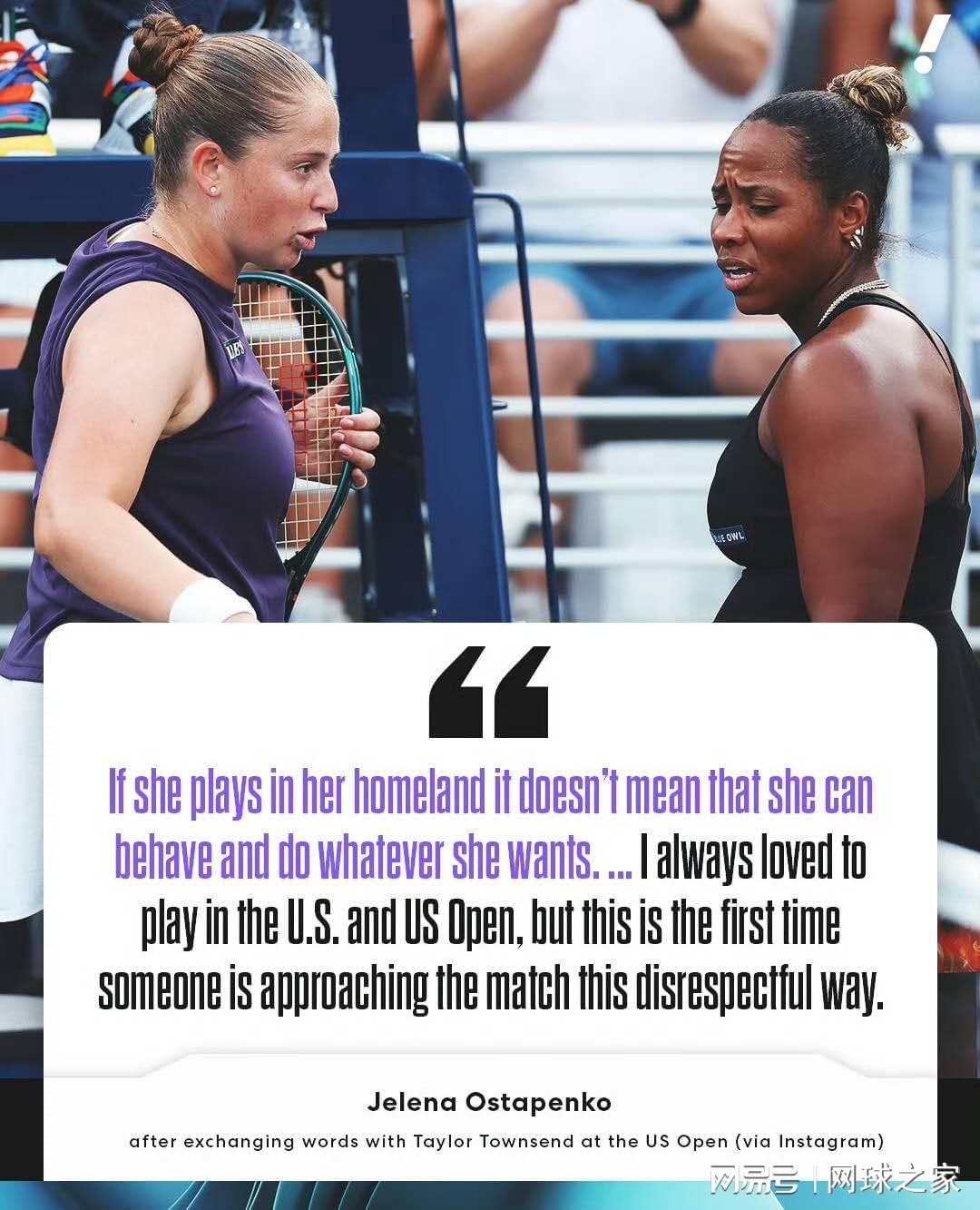 据悉,两个人争吵的原因是因为奥斯塔彭科指责汤森德在比赛中出现幸运擦网球后未道歉,并指责其这种行为是“没受过教育”。此外,奥斯塔彭科对于美国人热身一开始不在底线对拉反而是直接在网前练习截击的行为不满,并称对手这一举动是“没品”。
